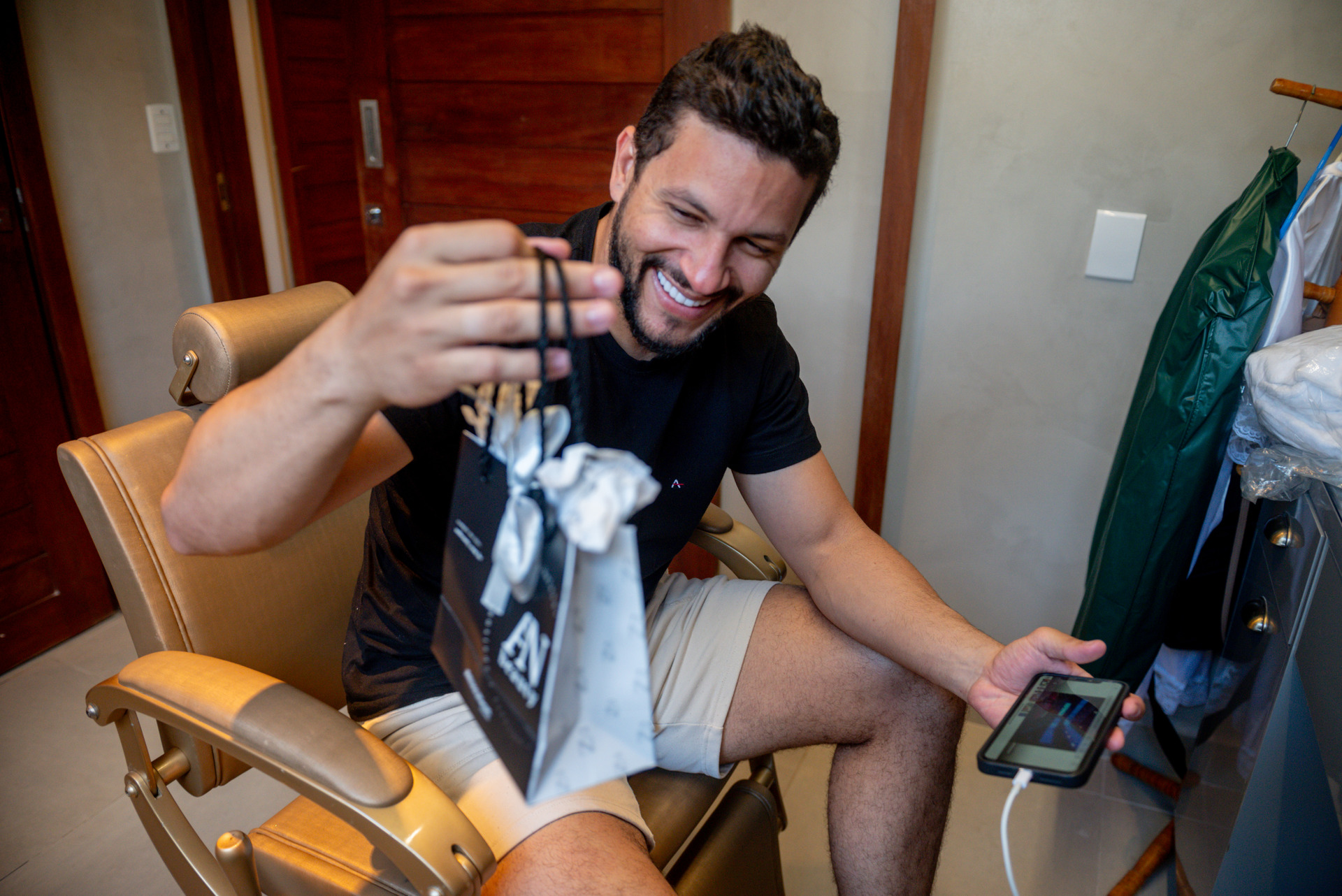 O making of do noivo é muito mais do que uma simples preparação para o grande momento; é um registro emocionante e cheio de significados. É nesse instante que a ansiedade se mistura à alegria, os laços com os padrinhos se fortalecem e momentos de descontração ganham vida. Cada risada compartilhada, os toques finais no traje, o brinde que celebra a união e até mesmo os gestos de apoio entre amigos se tornam memórias que merecem ser eternizadas. O making of é uma oportunidade única de capturar não apenas a essência do noivo, mas também a cumplicidade e a leveza de um dia tão especial. Esses registros se transformam em lembranças atemporais, que mostram não apenas o amor do casal, mas também o carinho e a energia contagiante daqueles que estão ao lado dele. Valorize essa parte tão especial do seu dia e permita que cada detalhe seja contado em imagens inesquecíveis.